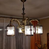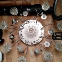 Продам люстру.Необходимо поправить пару контактов (две лампочки) Заменить цоколь.Есть пульт.Диаметр 80 см.