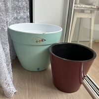 Два цветочный горшка На 18 л с авто отливом И на 5 л В отличном состоянии , не треснутые , не битые Цена за оба